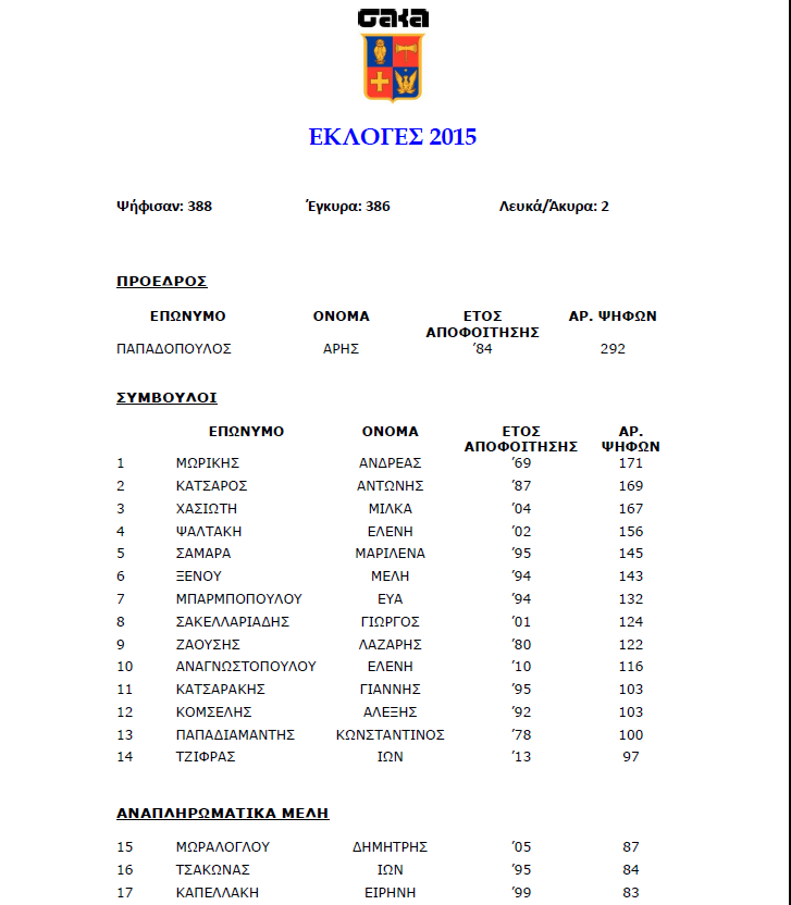 Εκλογές ΣΑΚΑ 2015 – Αποτελέσματα