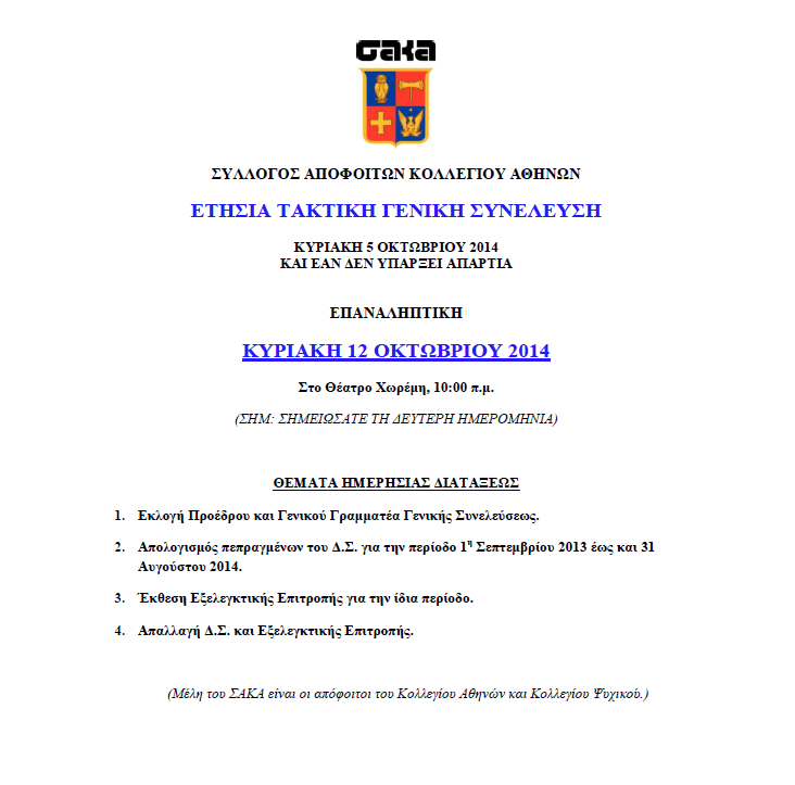 Ετήσια Τακτική Γενική Συνέλευση